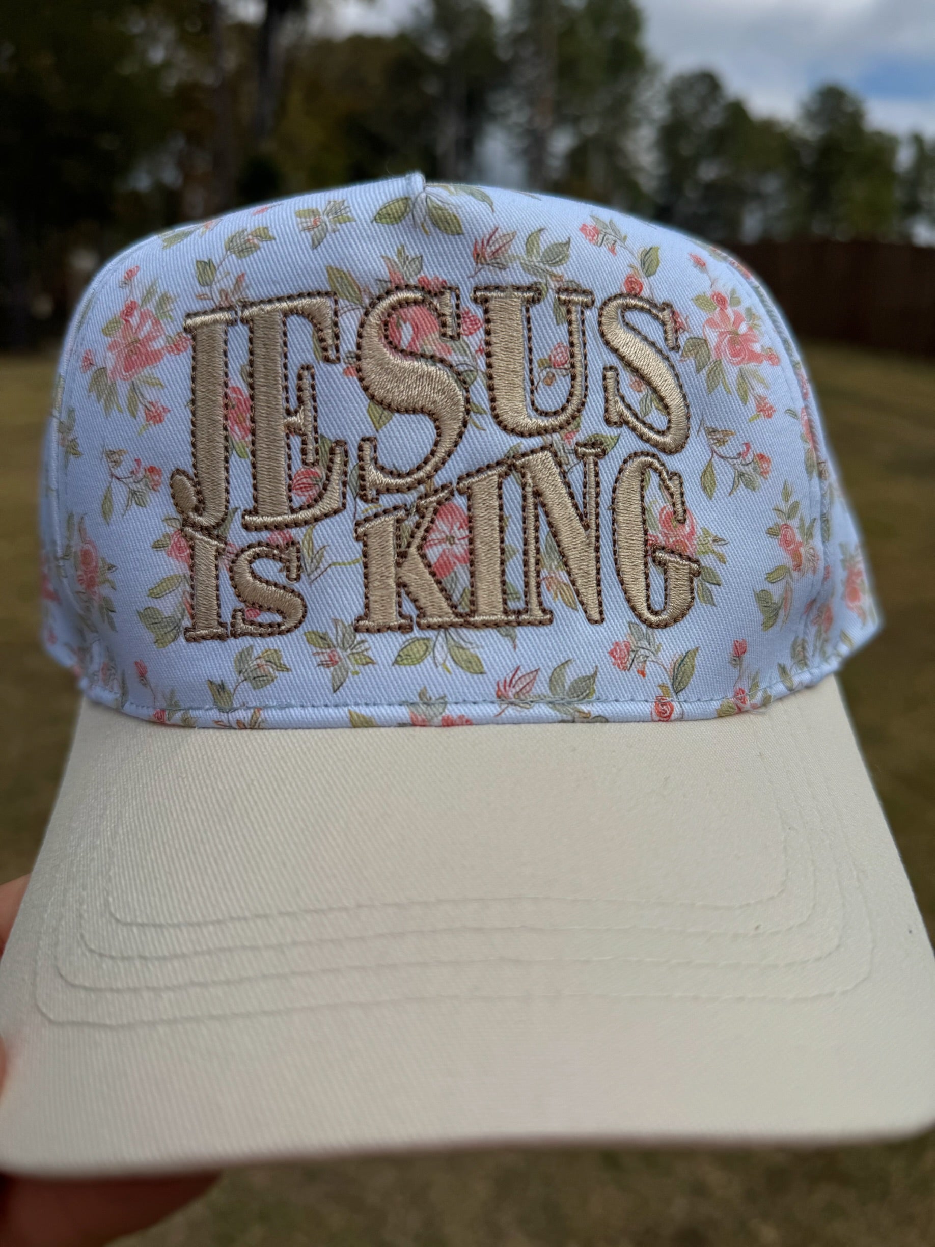 Declare your faith boldly and beautifully with our JESUS IS KING Floral Hat — a sweet blend of feminine design and powerful truth. 🌸