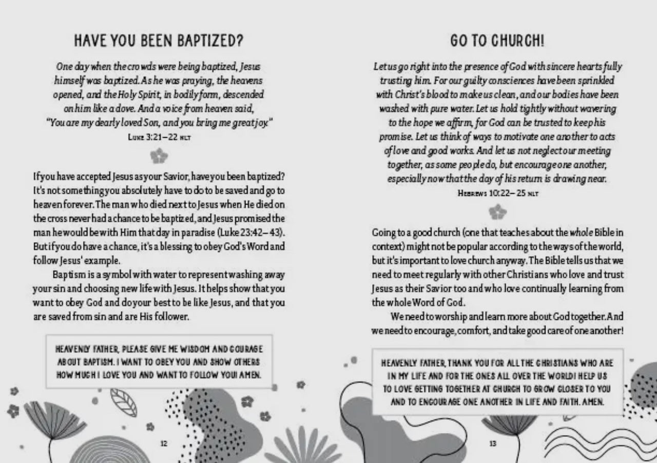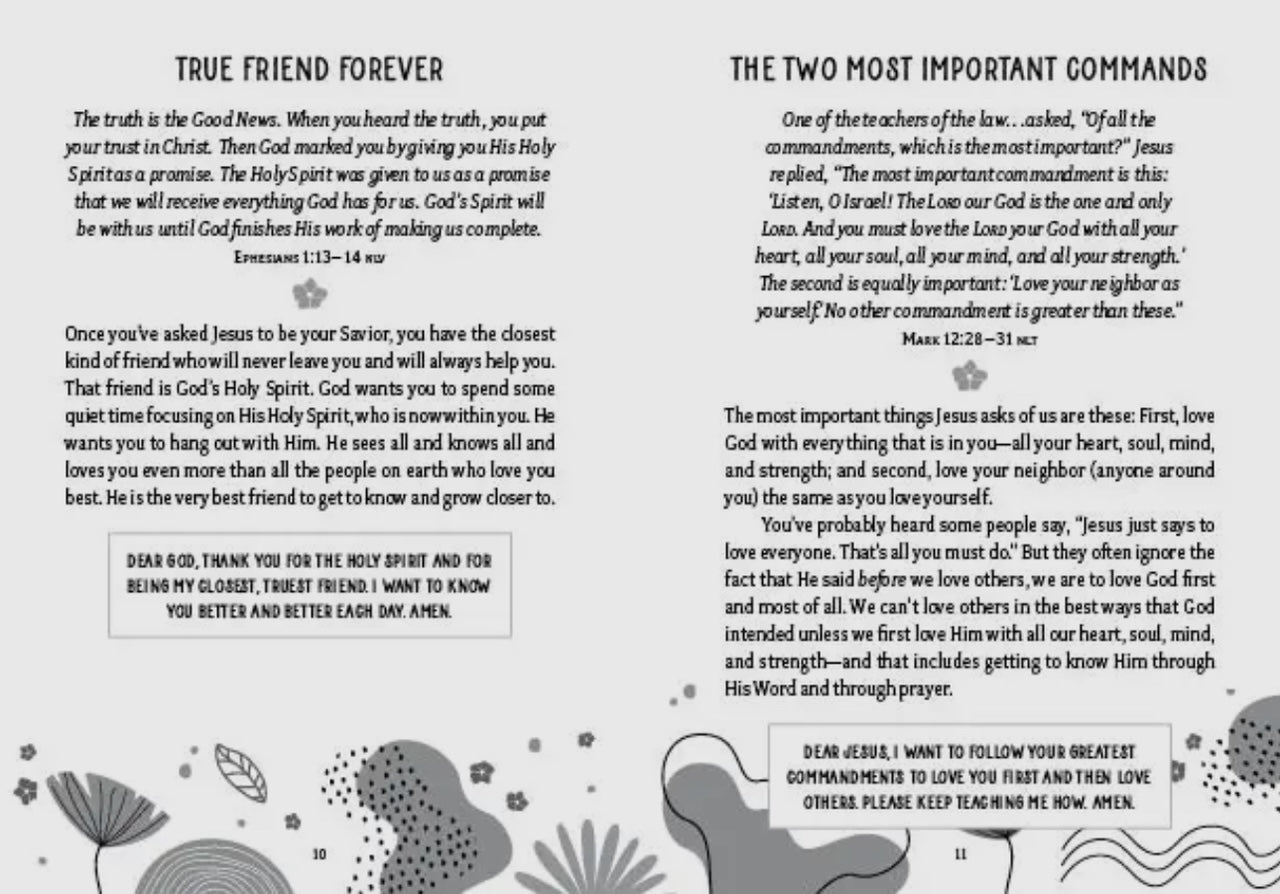With short, easy-to-read entries, this devotional meets girls right where they are: school stress, friendships, identity, emotions, and everyday challenges. Each devotion includes comforting encouragement, biblical truth, and simple prayers that remind them they are loved, seen, and created with purpose.